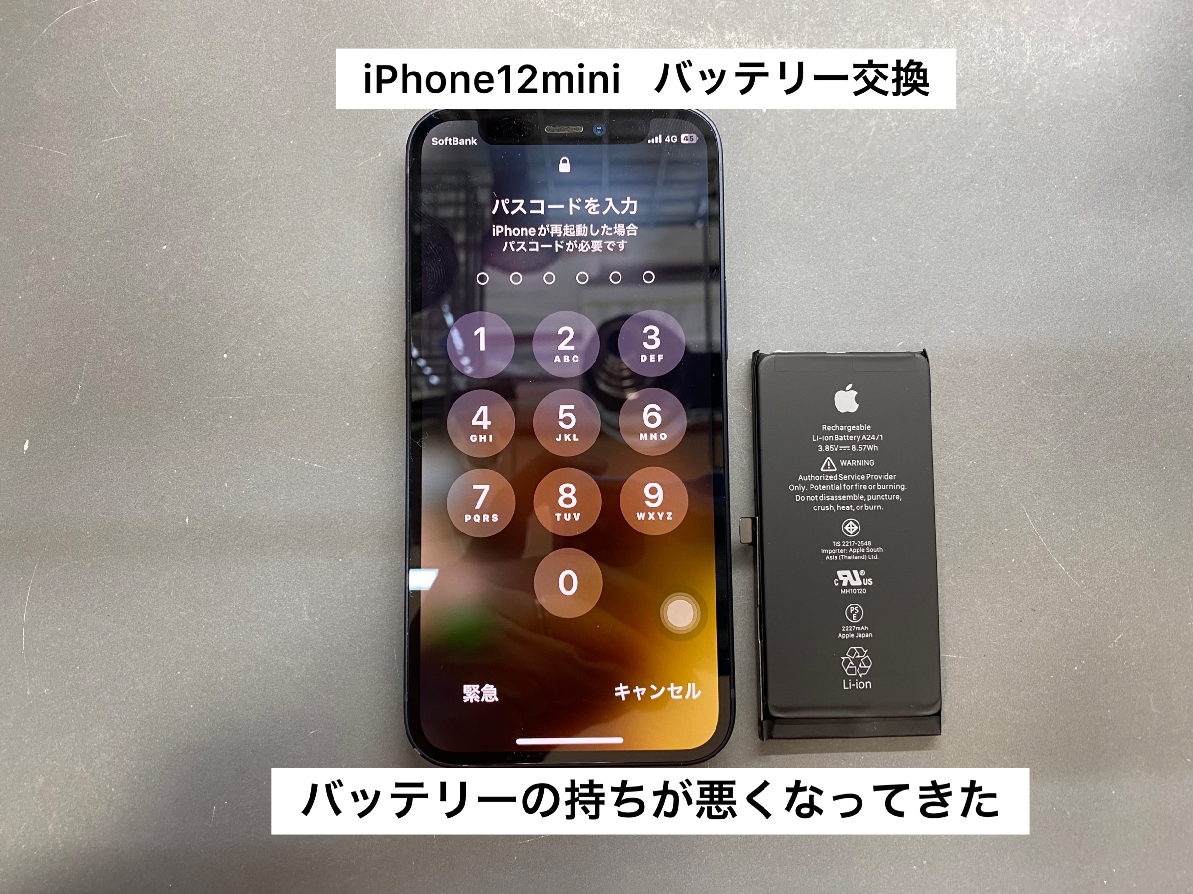 今回のiPhone修理は、iPhone12miniのバッテリー交換。