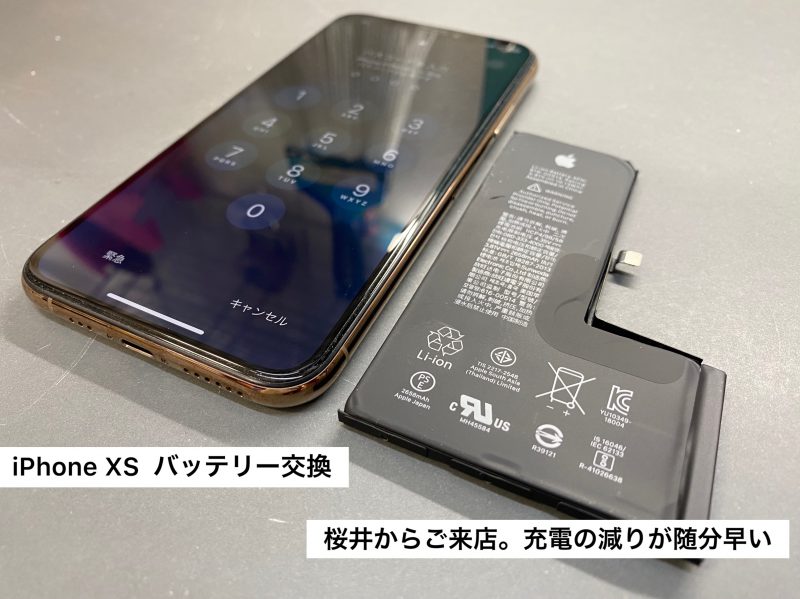 本日のiPhone修理は、iPhone XSのバッテリー交換です。