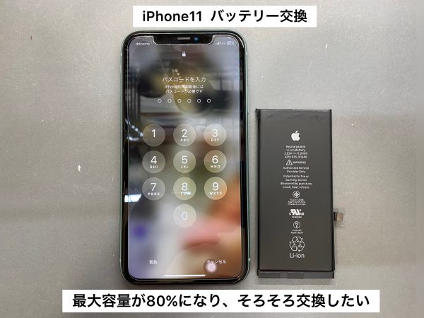iPhone11バッテリー交換のご依頼。最近バッテリー交換が増えております!新しく買い替えるのも一つですが、一度iPhone修理してみませんか?