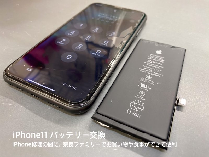 「アイフォンのバッテリー交換をお願いします。iPhone11を使っているのですが、ここ最近電池の持ちが悪くて不便なんです。大和西大寺近辺で、iPhone修理をしている店を探していたのですが、近所の奈良ファミリーの館内にあるカメラアサヒさんでバッテリー交換ができると知って、とても便利で安心だなと思いました。」
