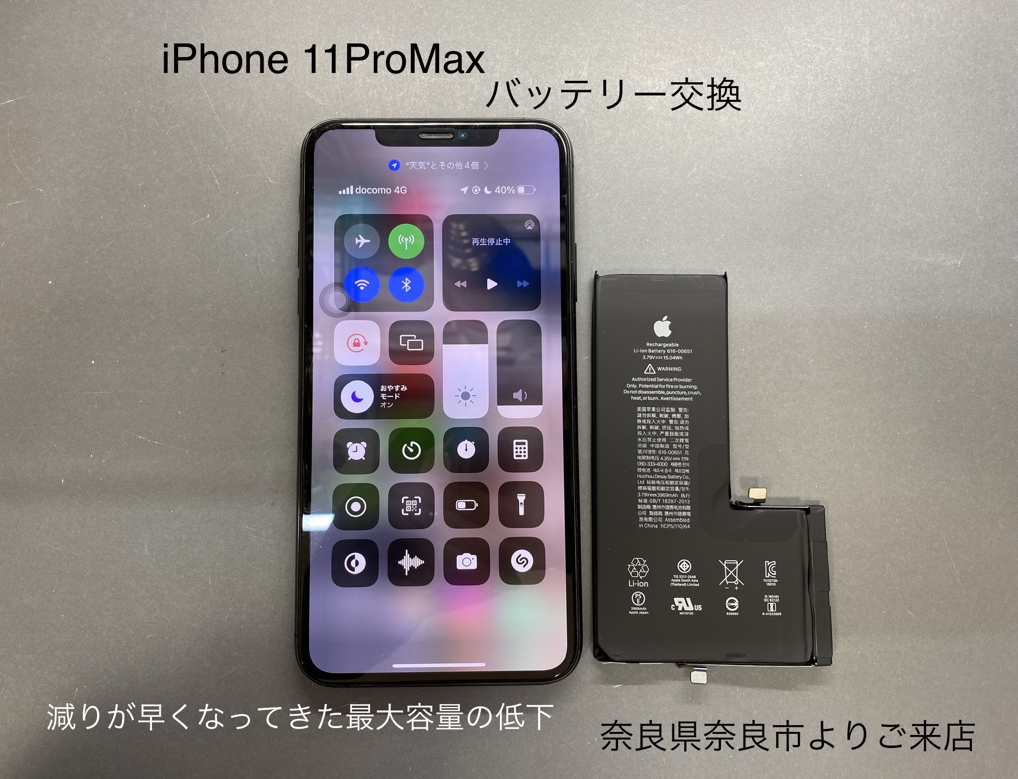 「3年以上使用していて、バッテリーの持ちが悪くなりバッテリーの状態を見ると劣化していると表示が出ていた」とお話しして下さいましたのは、奈良県奈良市よりお越し下さいました、iPhone 11ProMaxをお使いのお客様です。