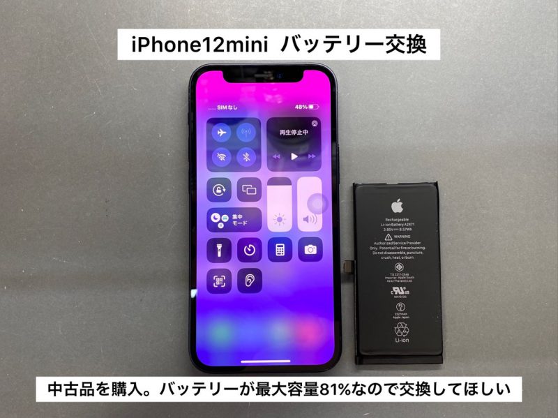 「今持ってるiPhoneがあまりに状態が悪く、中古のiPhone12mini を購入した。バッテリーの最大容量が81%と出てるから、先に交換しておいて長く使用したい。中古品だから、中の状態も知りたい」とご来店下さいました。