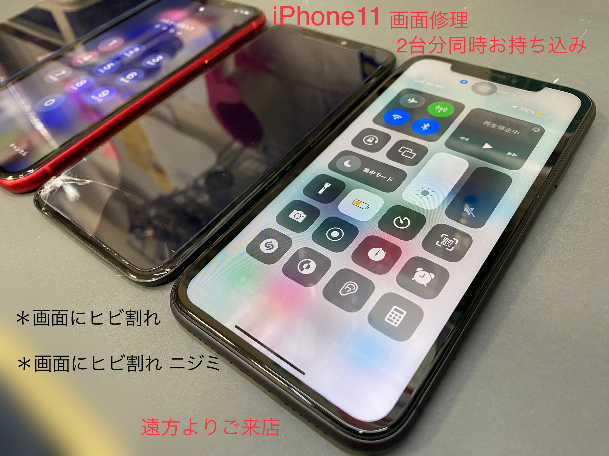今回のiPhone修理のご紹介は遠方よりお越し下さいました、iPhone11の画面修理2台分を同時にお持ち込み頂きました。