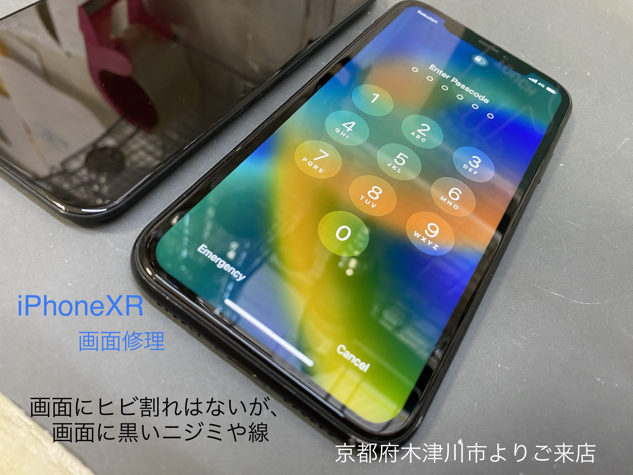 「以前にもここで画面交換をしてもらったが、また落としてしまいガラスはヒビ割れなかったが画面左側に黒いニジミや線が出てきてしまった」とお話しして下さいましたのは、iPhoneXRの画面修理で京都府木津川市よりご来店下さいましたお客様です。