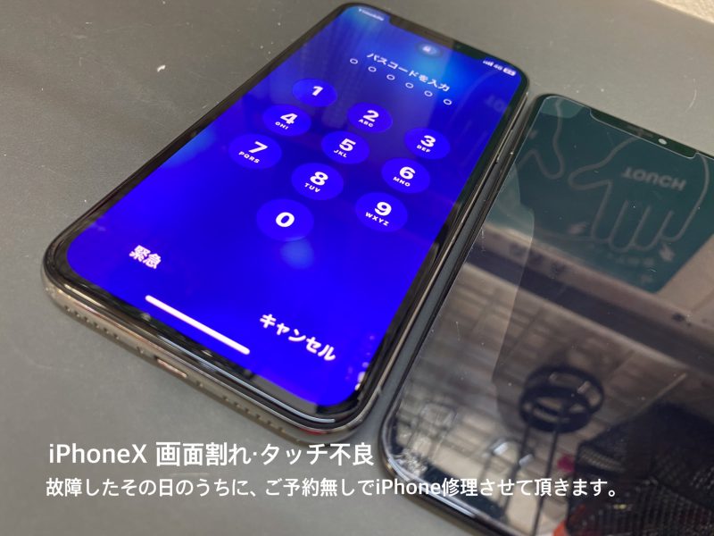 本日のアイフォン修理は、iPhoneXの画面割れ修理です。