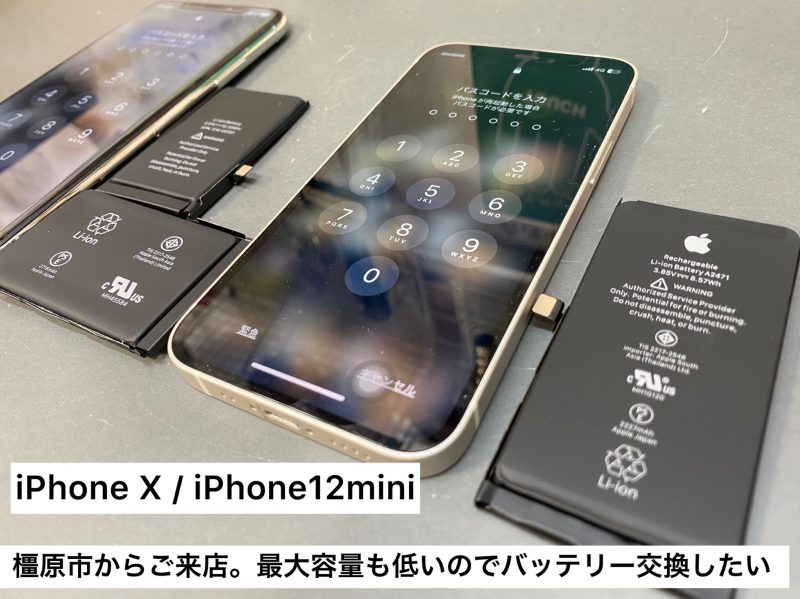 今回ご紹介するのはiPhone Xと12miniのバッテリー交換。