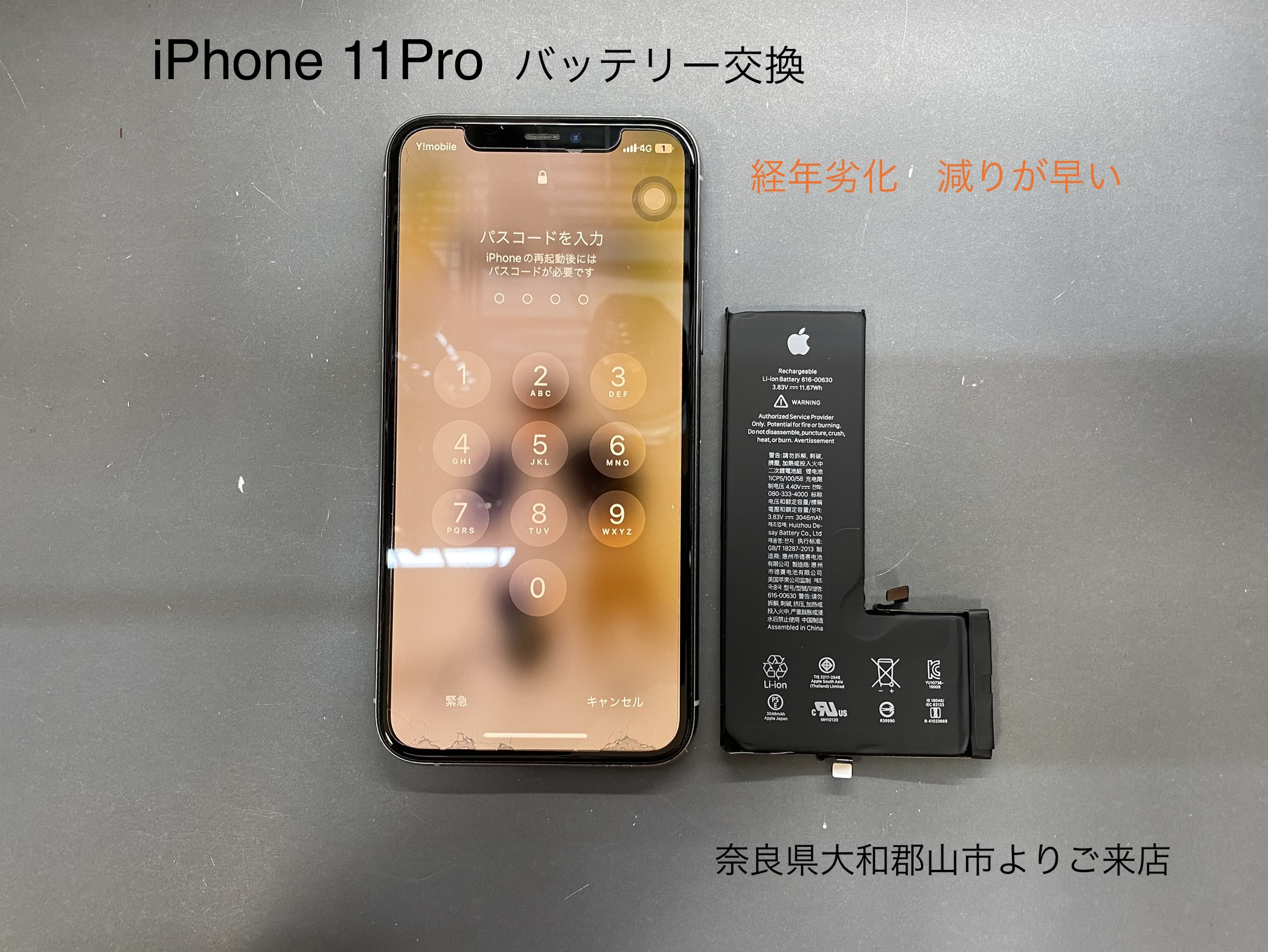 「iPhone 11Proのバッテリーの減りが早く、最大容量も低下しているのでバッテリー交換をして欲しい」とお話しを伺いました。