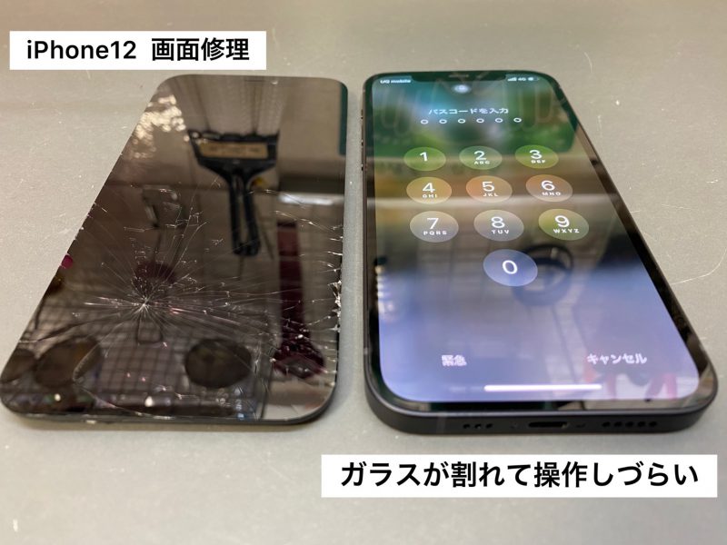 今回ご紹介のiPhone修理は、iPhone12の画面割れ修理です。