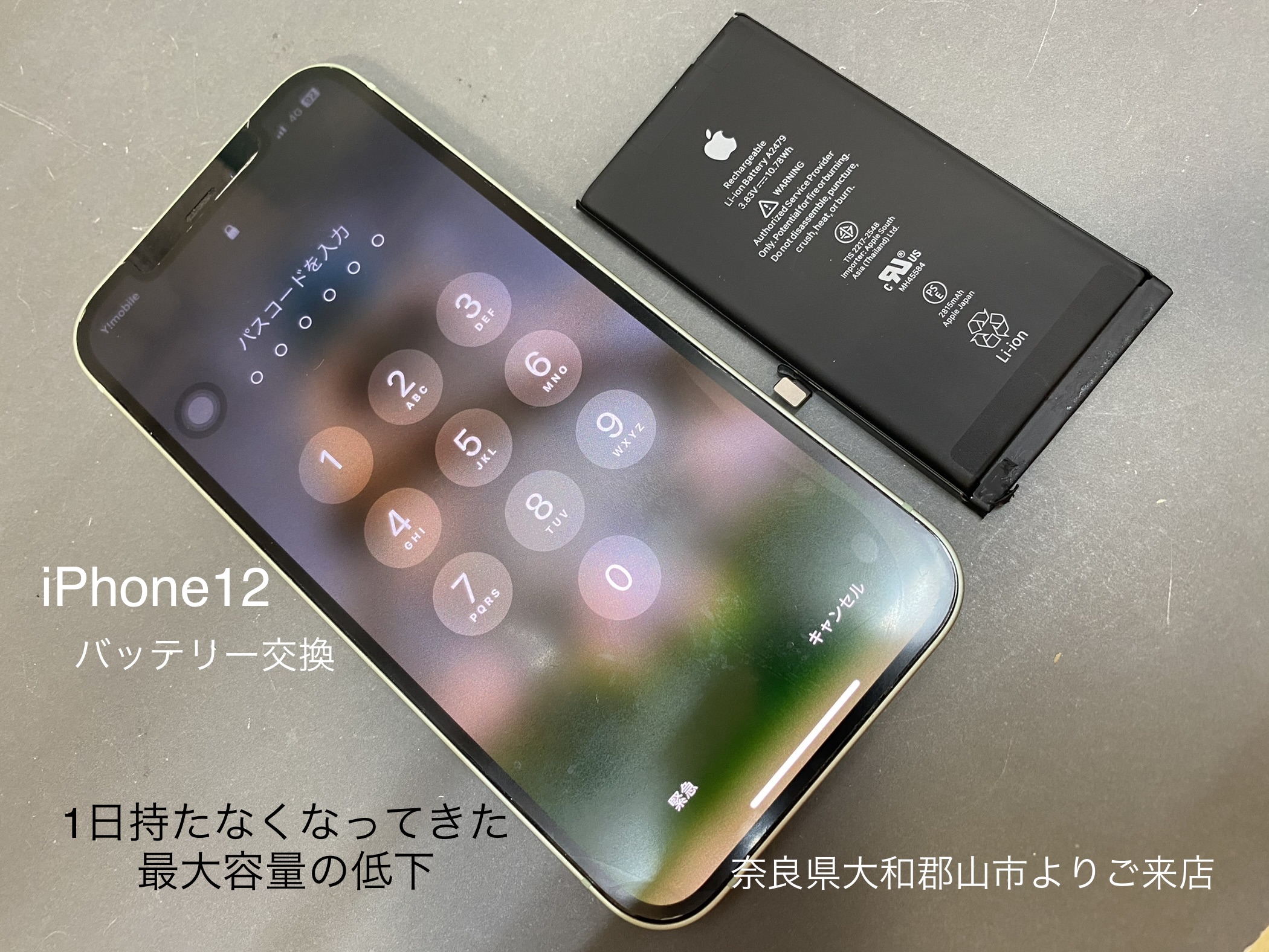 【iPhone12バッテリー交換】iPhone・スマホ修理店をお探しでしたら、カメラアサヒならファミリー店へお越し下さいませ。