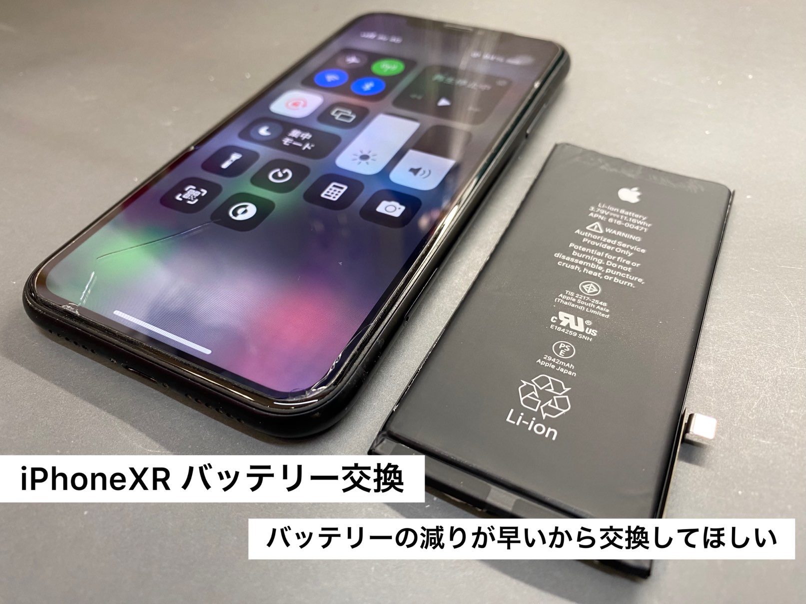 今回ご紹介のiPhone修理は、iPhone XRのバッテリー交換。
