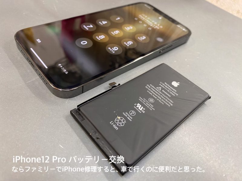 本日のアイフォン修理は、iPhone12Proのバッテリー交換です。