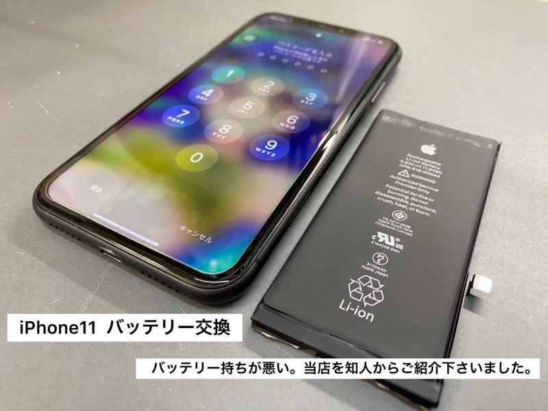 今回ご紹介の方は、生駒郡平群町からご来店下さいました。iPhone 11でバッテリーの持ちが悪いとご来店。最大容量が77%を切る状態になっていました。一日の中で何度か充電しないと持たないから、新機種に変えてもいいけど、どうしようかお悩みの中、お知り合いが当店でバッテリー交換をご利用された事があったようで、一度試してみたら?とご紹介下さったようです。