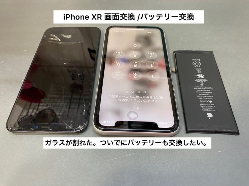 今回ご紹介のiPhone修理は、iPhone XRの画面交換とバッテリー交換。