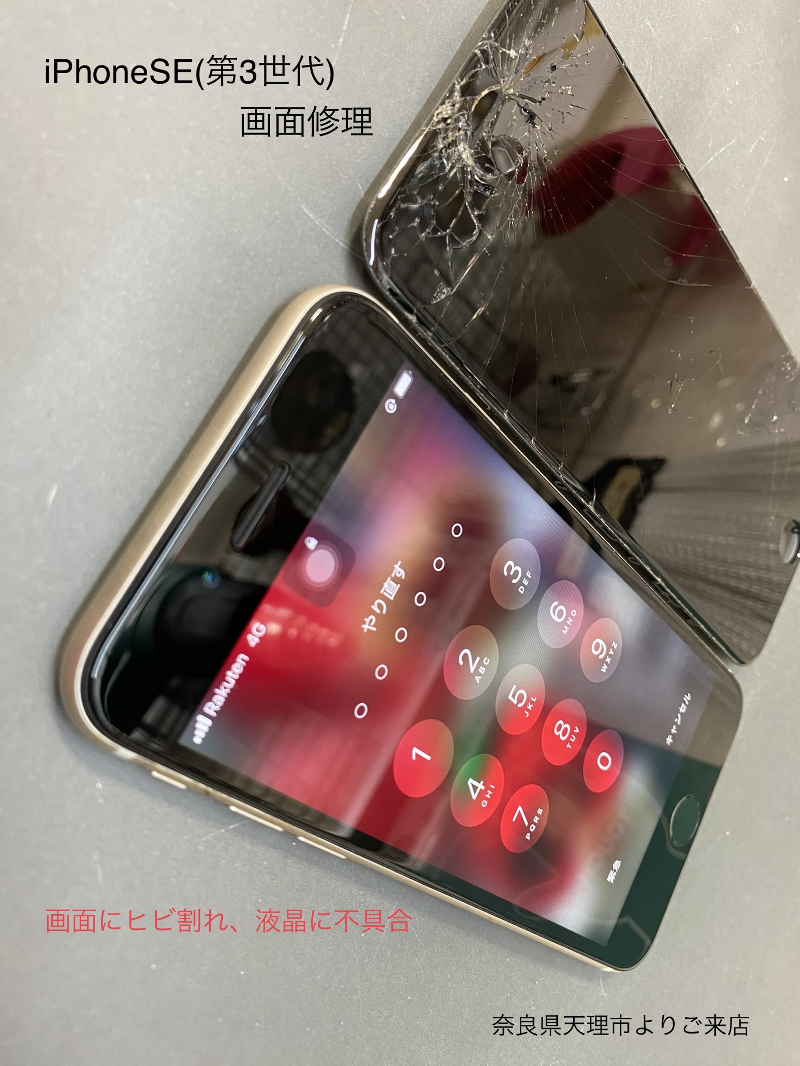奈良県天理市よりご来店のお客様よりiPhoneSE(第3世代)の画面割れの修理をご依頼頂きました。