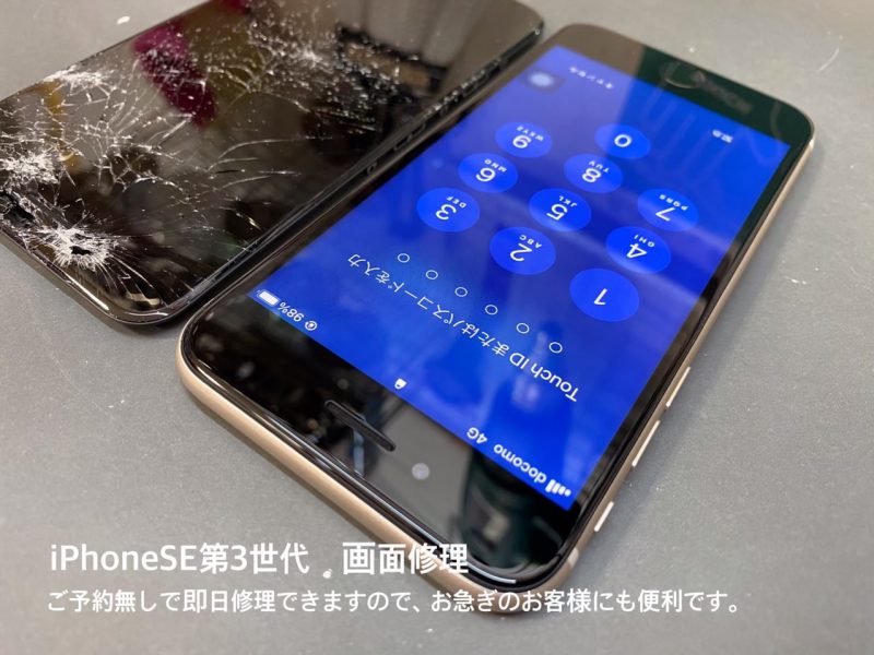 本日のアイフォン修理は、iPhoneSE第3世代の画面修理です。