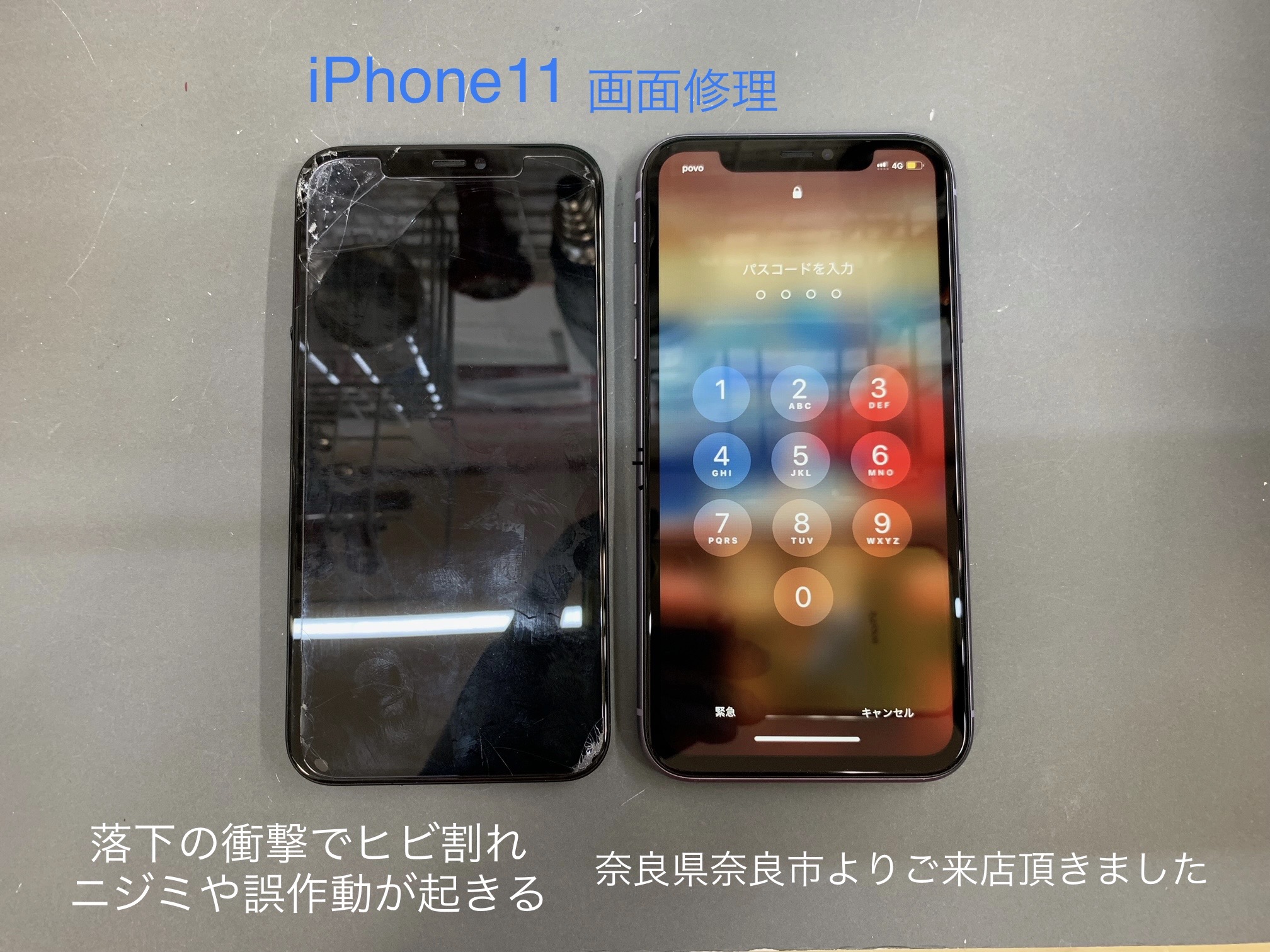 奈良県奈良市よりお越しのお客様よりiPhone11の画面割れ修理のご依頼を頂きました。