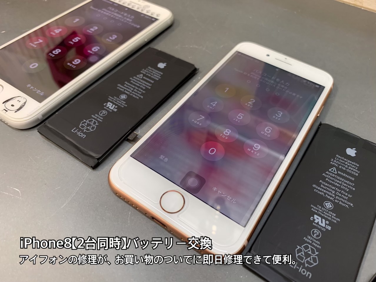 本日の2台のiPhone8のバッテリー交換も、60分ほどで完了致しております。
