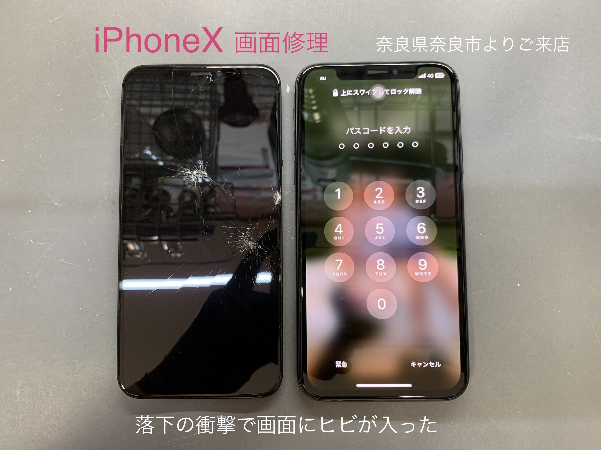 奈良県奈良市よりお越しのお客様よりiPhoneXの画面割れ修理のご依頼を頂きました。