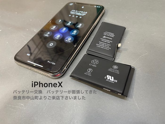 iPhoneXのバッテリー交換で奈良市中山町よりお持ち込み頂きました。
