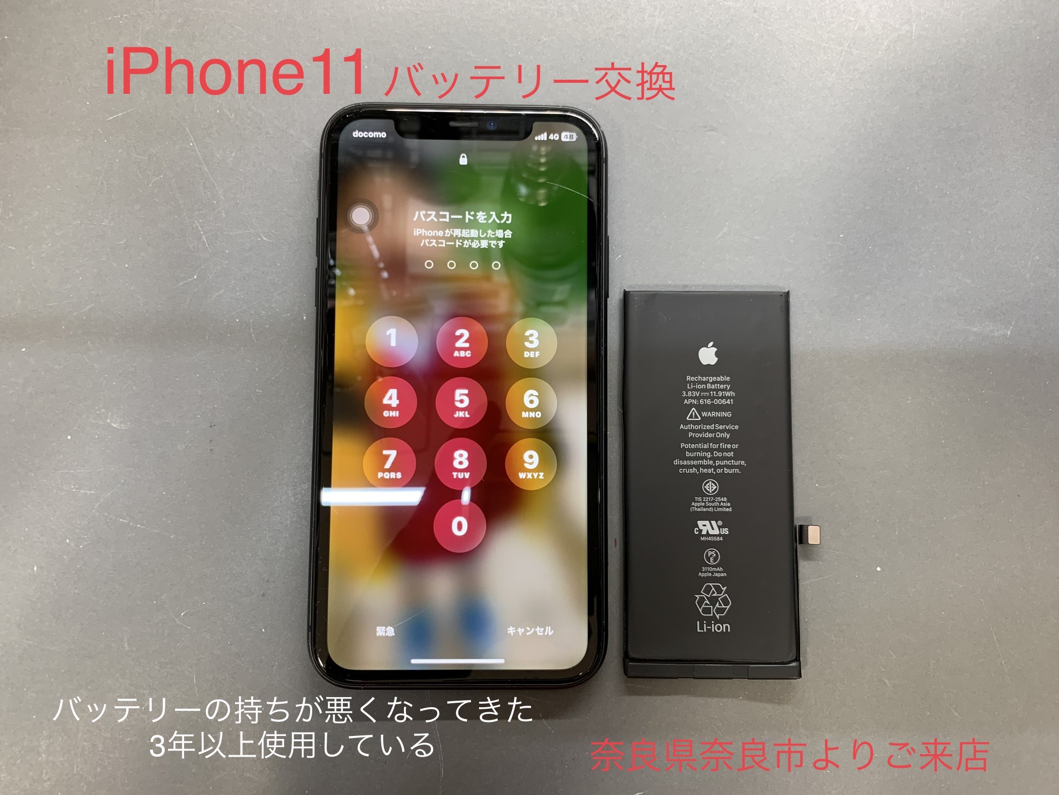 《iPhone11バッテリー交換》iPhone・スマホ修理カメラアサヒならファミリー店です。