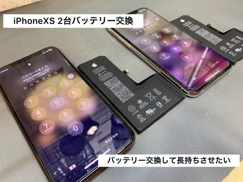 iPhone XSのiPhone修理のご依頼。ご家族様のiPhoneと2台お預かりいたしました。バッテリー交換をして長持ちさせたいなら、奈良ファミリーまでお越し下さい!