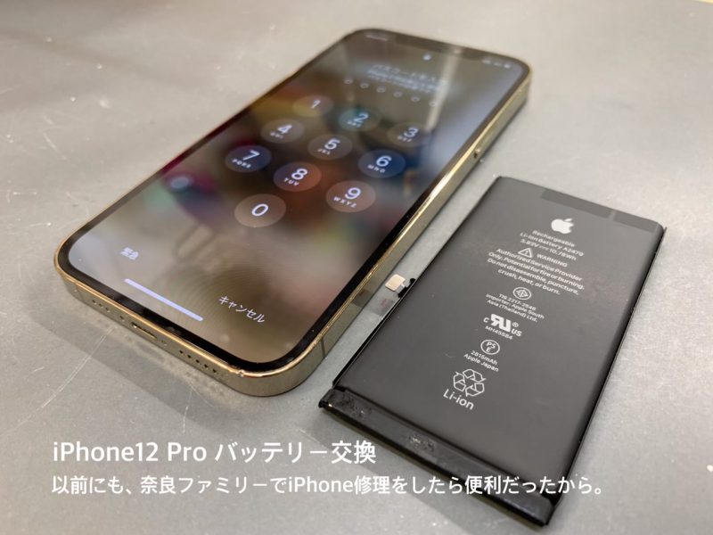 京都府相楽郡精華町でiPhone12 Proのバッテリー交換なら奈良ファミリーでiPhone修理が便利です。