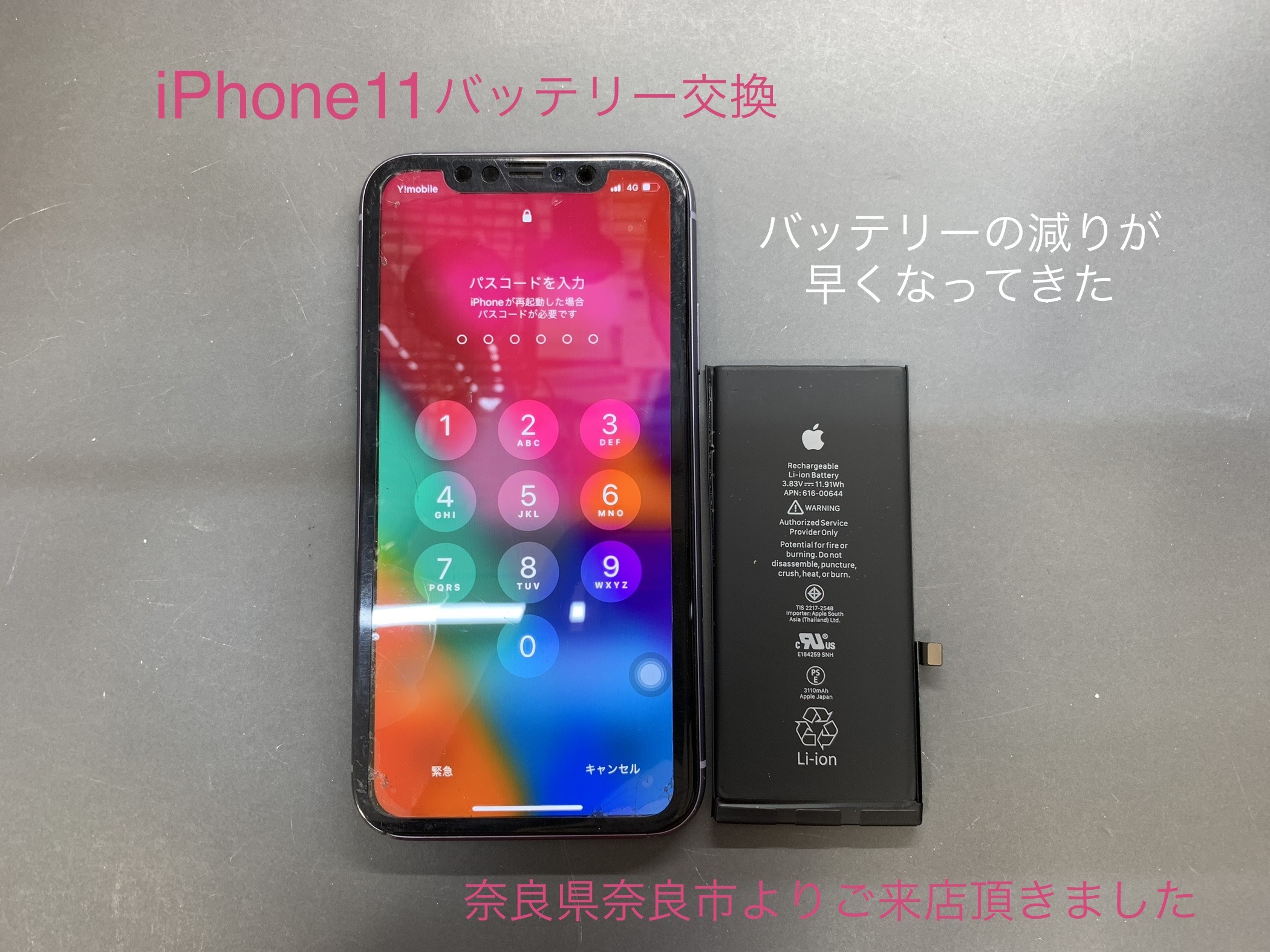 奈良県奈良市よりお越しのお客様よりiPhone11のバッテリー交換のご依頼を頂きました。