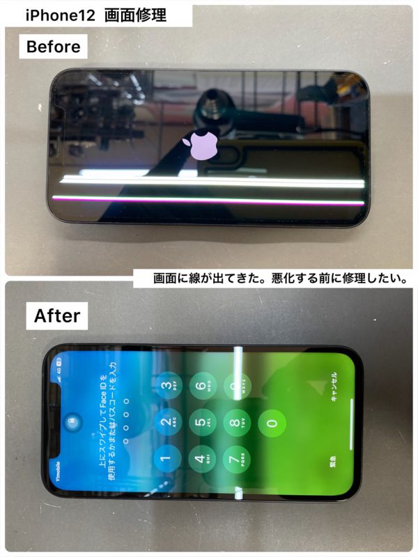 iPhone12の画面修理を安く修理いたします!生駒市からご来店下さいました。iPhone修理をお考えなら、ならファミリー1階カメラアサヒ にお越し下さい!
