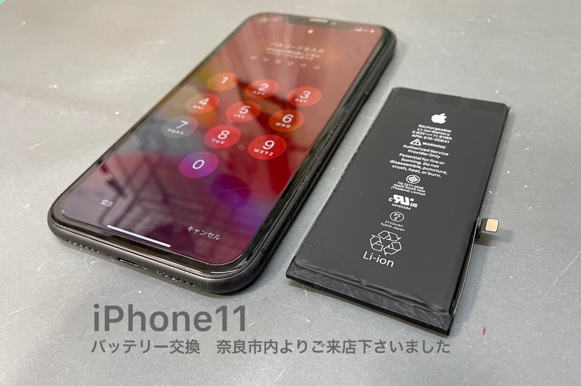 iPhone11が使いやすいので家族みんなで持っているが、春頃から自分だけ充電の減りが激しくなり、授業がなくなってからも頻繁に使っているので充電ケーブルを差したまま操作することもある…と奈良県奈良市内よりご来店下さいました。