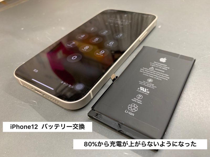 今回のiPhone修理は、iPhone12のバッテリー交換。