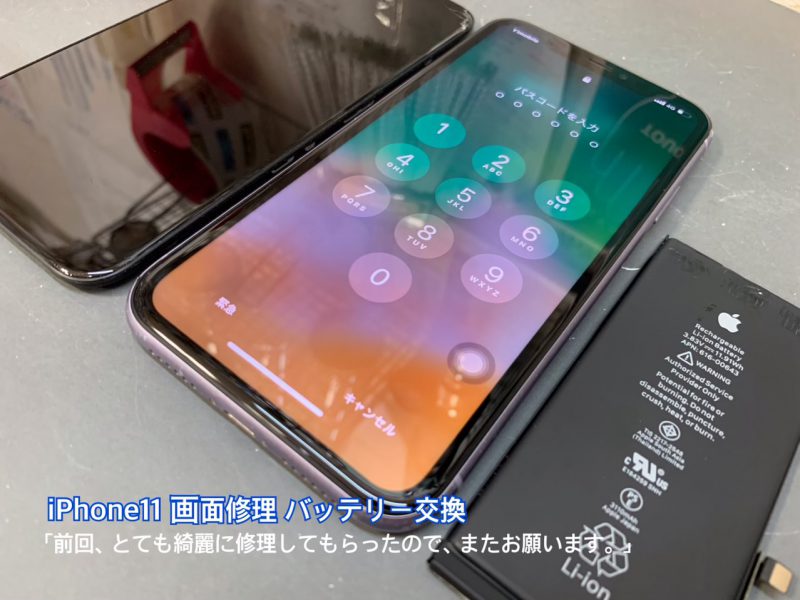 【iPhone11 画面修理 バッテリー交換】iPhone修理なら奈良ファミリーでいつも修理する
