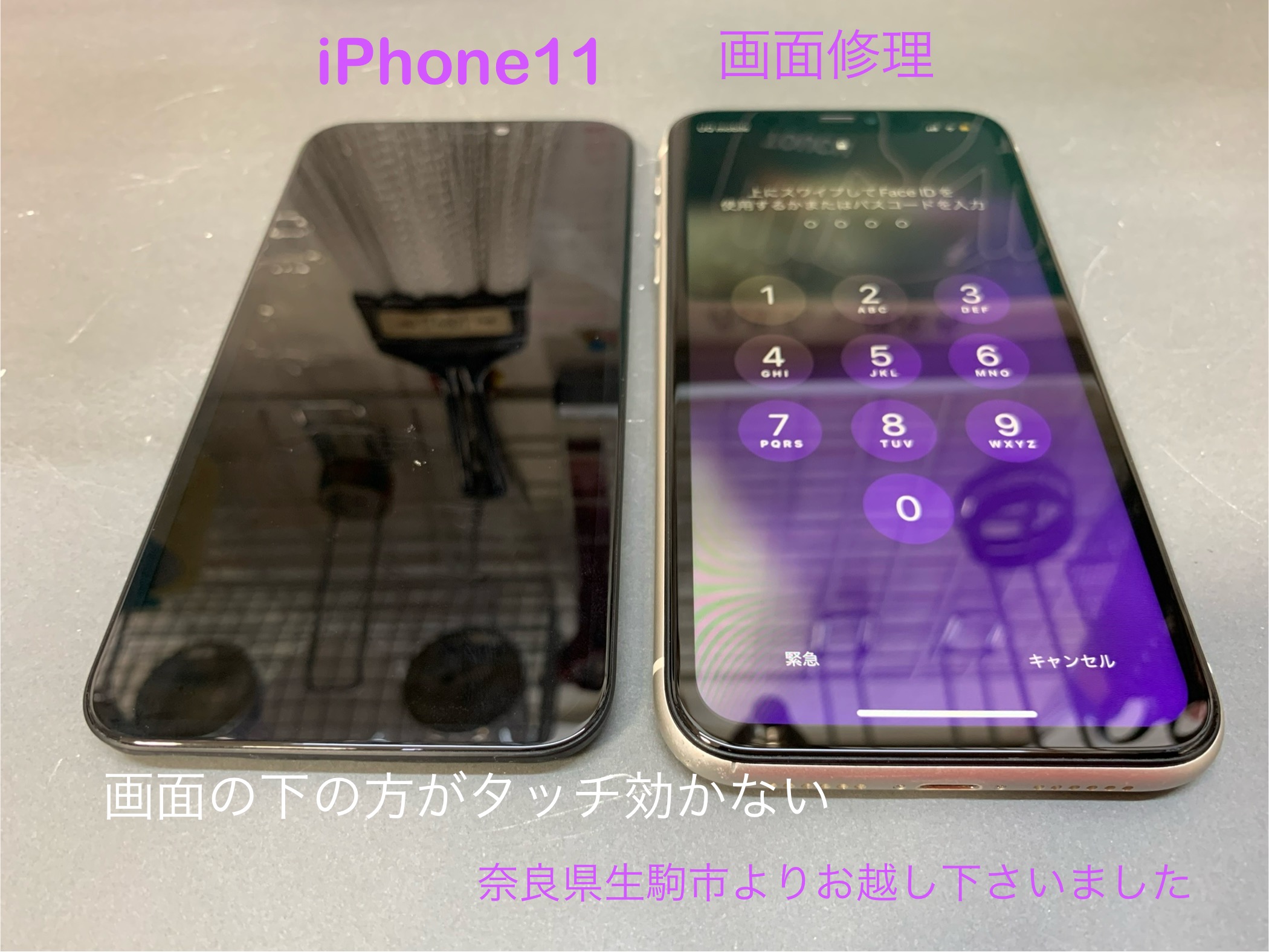 今回、ご紹介させて頂きますiPhone 修理は奈良県生駒市からお越しのお客様よりiPhone 11の画面修理のご依頼を頂きました。