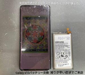 奈良県奈良市あやめ池より、Galaxy s10バッテリーの減りが早い、充電中に熱くなる症状でご来店くださいました。