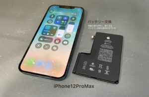 半年ほど前に、外観が良いとの理由でこちらのiPhone12ProMaxを中古購入されたものの、購入して1ヶ月後くらいから充電の持ちはあまり良くないなと感じられていたそうです。