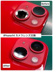 iPhone14のカメラレンズが割れたとご来店。iPhone修理で直したいなら、ならファミリー1階カメラアサヒにお越し下さい!