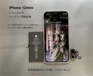 今回ご紹介させて頂きます、iPhone修理は奈良県奈良市からお越しのお客様よりiPhone 12miniのカメラとバッテリーの交換をご依頼頂きました。