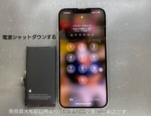 「電源がシャットダウンするが充電を差すと改善するが充電を差しっぱなしでないと使用出来ない」症状でバッテリー交換にご来店頂きました。