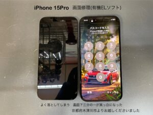 《iPhone 15Pro画面修理(有機ELソフト)iPhone・スマホ修理カメラアサヒならファミリー店です。