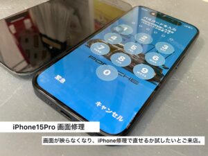 iPhone15Proの画面が映らないからiPhone修理で直るか見てほしいとご依頼頂きました。ならファミリー内でiPhone修理をしてみませんか?一度カメラアサヒまでご相談下さい。