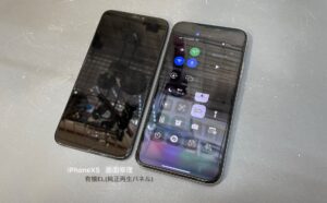 iPhone修理店の部品交換のみでは改善される部分と改善されない部分がありますので、本体基板が衝撃の影響を受けていると仮定して、作業に入る前に少し万が一のお話もさせて頂きました。インカメラの前面部分に深い傷があり、Face IDも機能しない状態でした。センサー部がガラス片によって傷ついたり損傷しておりますと、きれいなパネルに移植してもFace ID機能が効かないままになることもあります。iPhone修理においては、部品に振り分けられた役割により正規店修理で初期化や端末預かりでのみ復活する機能もございますので、非正規店での修理歴がないiPhoneの場合は、Apple正規店のメーカー修理と比較ご検討頂くことも大切です。