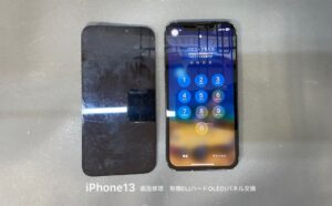 劣化してきていたパネルや凹みが出てきた本体側のフレームに衝撃が加わると、液晶が映らないだけでなくタッチ不良や誤作動などの故障につながってしまっていたという症例もあります。iPhone12以降のシリーズはパネル自体が金属フレームに沈み込む形で収められているため、フレームの凹みやゆがみが液晶の映りやタッチに影響を及ぼしてくる可能性もあります。