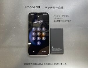 今回ご紹介させて頂きます、iPhone修理は奈良県大和郡山市からお越しのお客様よりiPhone 13のバッテリー交換のご依頼です。