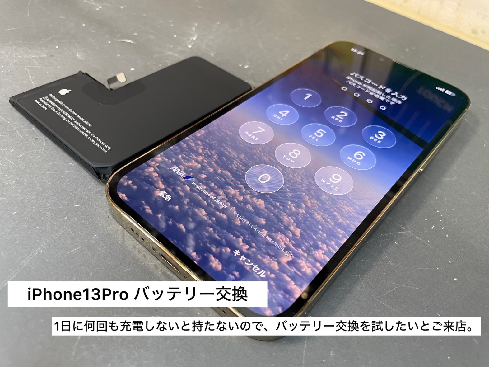 iPhone13Proのバッテリー交換をしたいと奈良市内からご来店。iPhone修理でバッテリー交換をお考えなら、ならファミリー1階カメラアサヒにお任せ下さい!