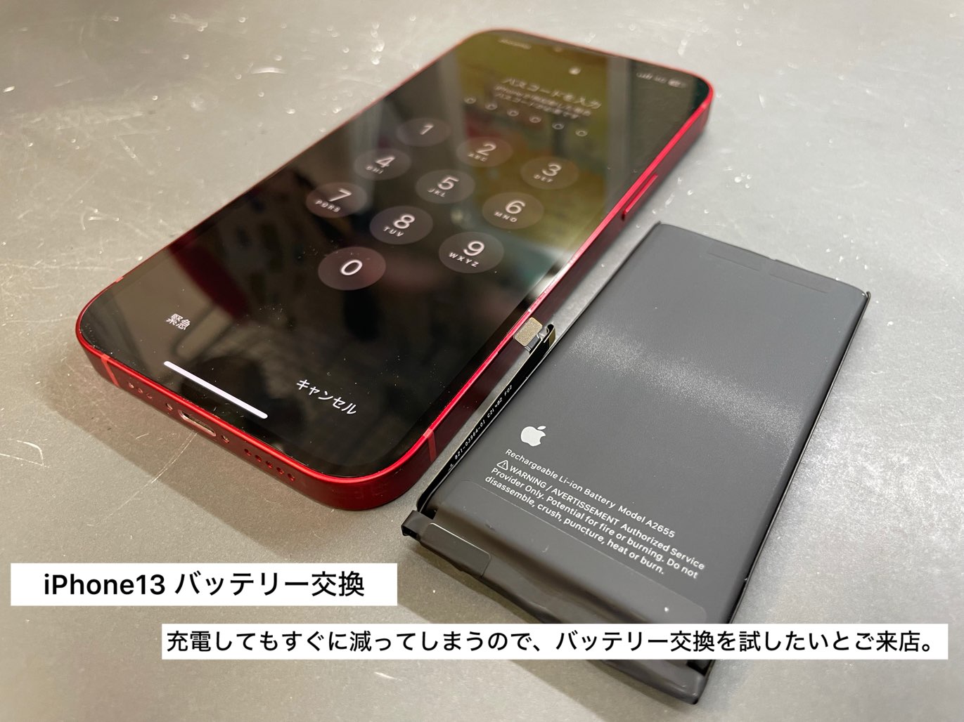 iPhone13シリーズのバッテリー交換のご依頼は非常に多く頂いております。今秋で発売されてから4年以上経ちますので、毎日使用していればバッテリーも劣化しているかと思います。