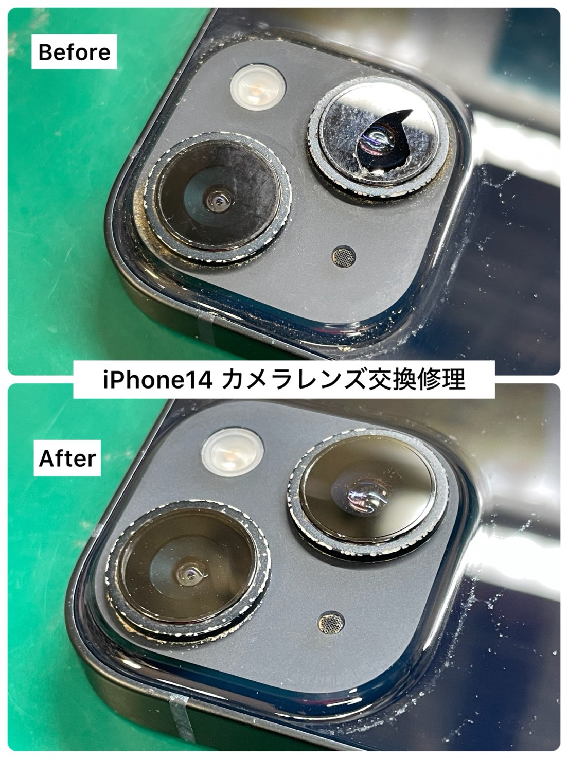 今回ご紹介するのは、iPhone14のカメラレンズ交換修理。橿原からご来店下さいました。
