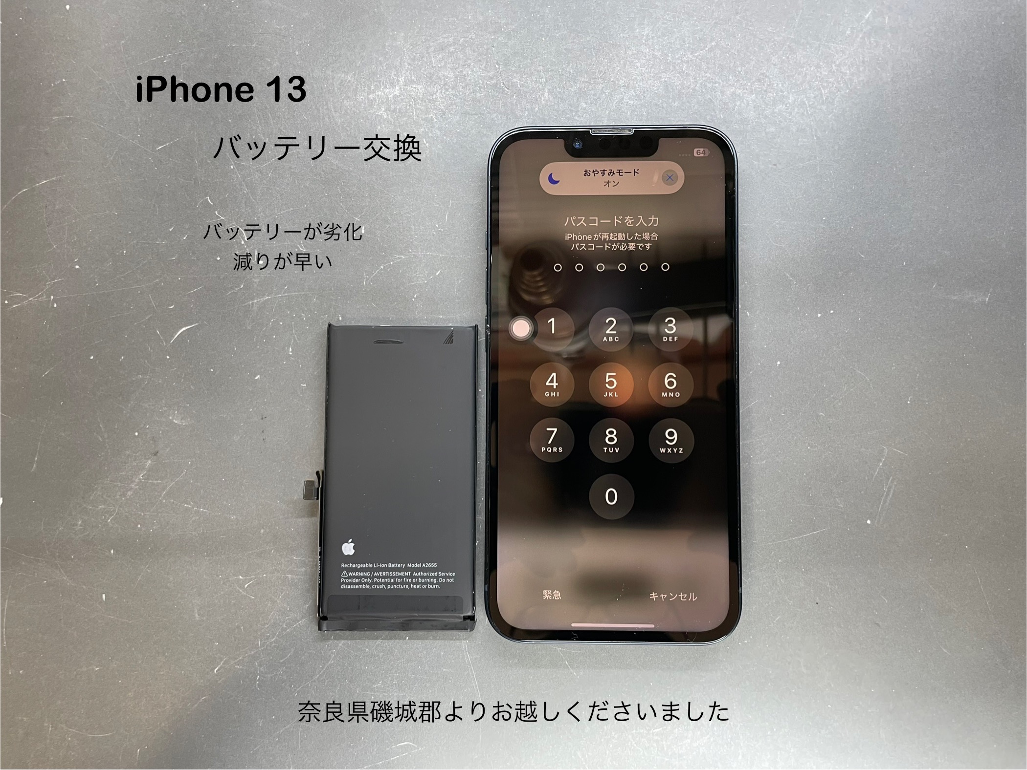 今回ご紹介させて頂きます、iPhone 修理は奈良県磯城郡からお越しのお客様よりiPhone 13のバッテリー交換のご依頼です。