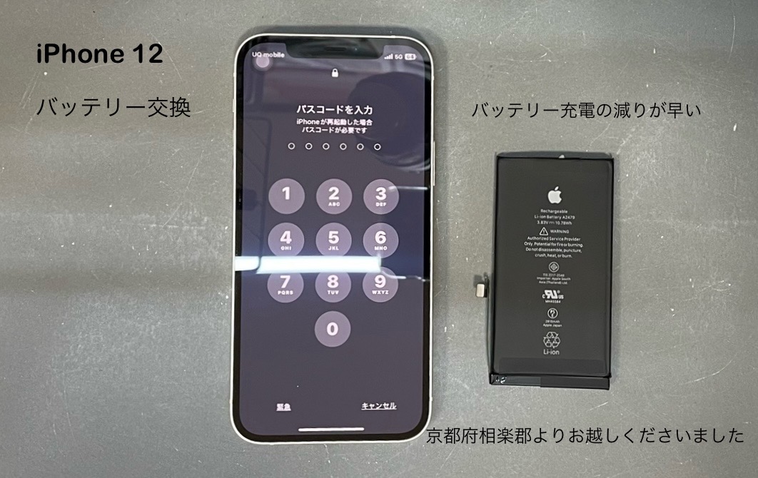今回ご紹介させて頂きます、iPhone 修理は京都府相楽郡からお越しのお客様よりiPhone 12のバッテリー交換のご依頼です。
