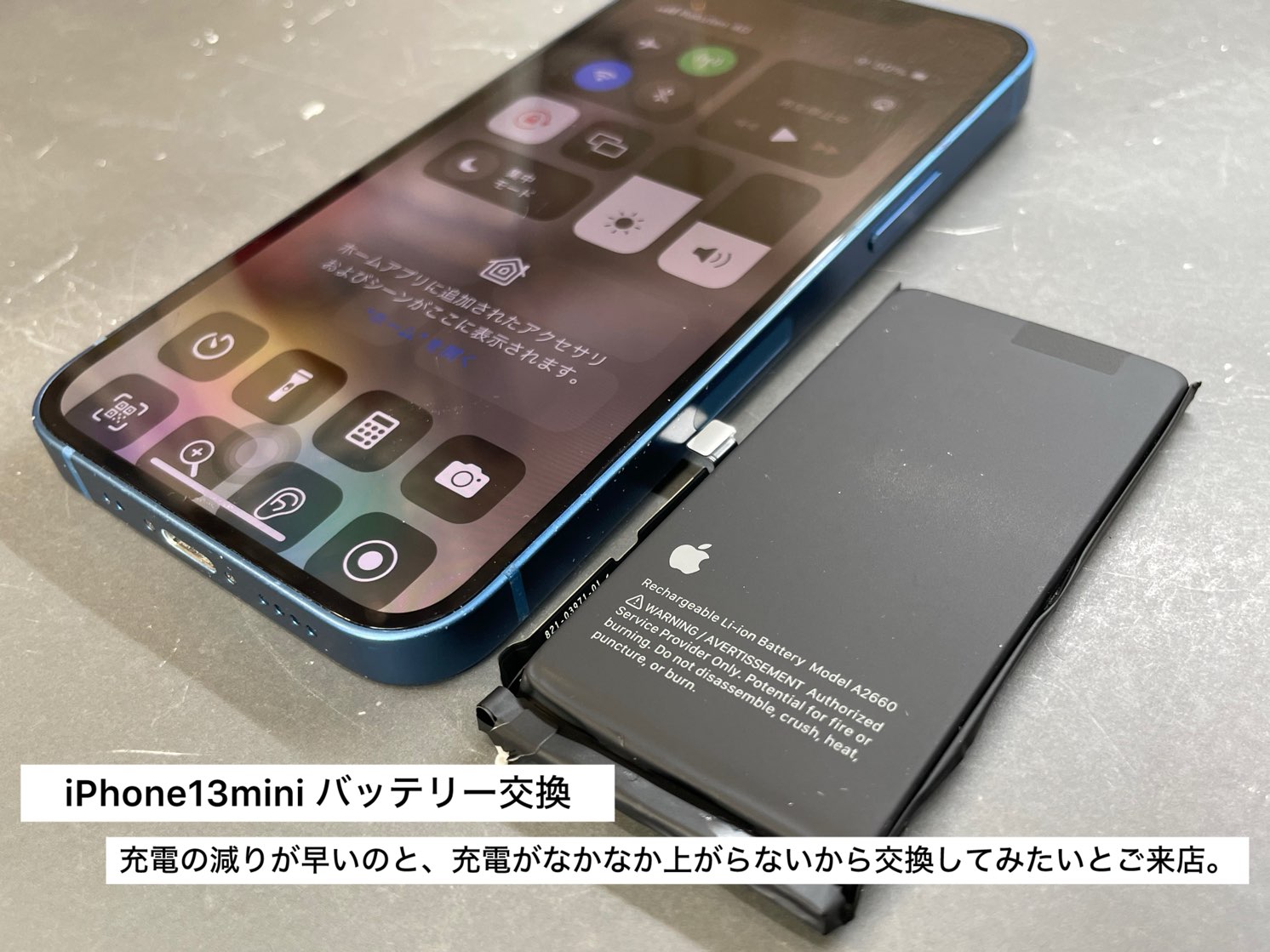 今回は、平群町よりご来店いただいたお客様のiPhone13 miniバッテリー交換事例をご紹介します。