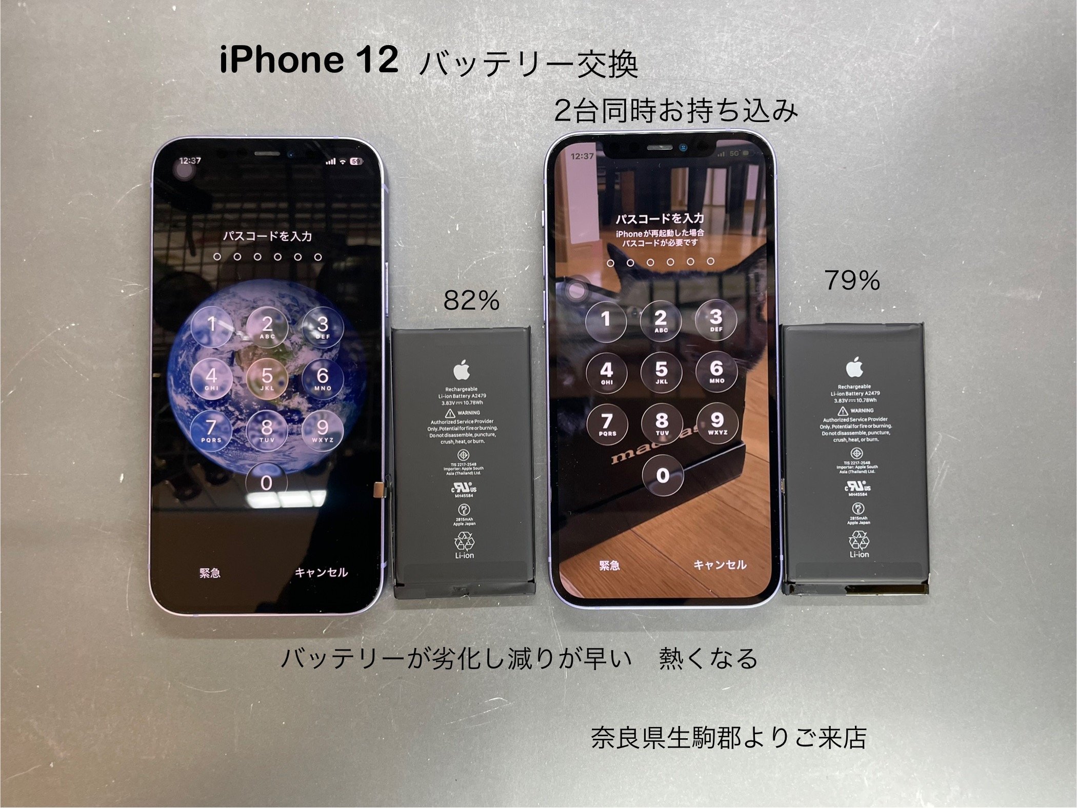 今回ご紹介させて頂きます、iPhone修理は奈良県生駒郡からお越しのお客様よりiPhone 12のバッテリー交換を2台分ご一緒にご依頼頂きました。
