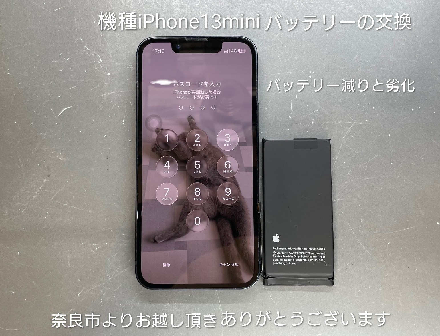 本日は奈良市よりiPhone 13 miniバッテリー交換にお越し頂きました。